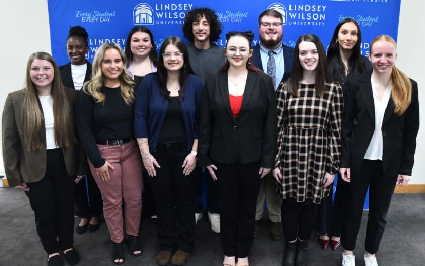 COLUMBIA, KY. (12/04/2025) The academic accomplishments of 13 Lindsey Wilson University students in the discipline of communication were celebrated Wednesday, Dec. 3, at the university’s chapter of Lambda Pi Eta.