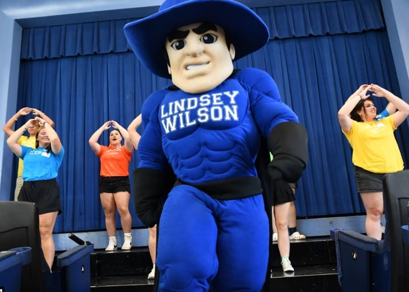 Another layer of excitement at the final New Student Orientation came at the welcome segment with the debut of a new university mascot, Blue Raider Bob. The previous Blue Raider Bob had “LWC” written across his chest; the new edition features “Lindsey Wilson” written across his chest, and he sports a more stylish cape.