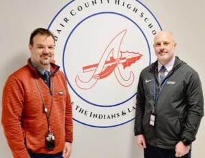 PHOTO – Lindsey Wilson College alumni Trent Hadley ’10 and Anthony Darnell ’08 have served together as assistant principals at Adair County High School since 2022.