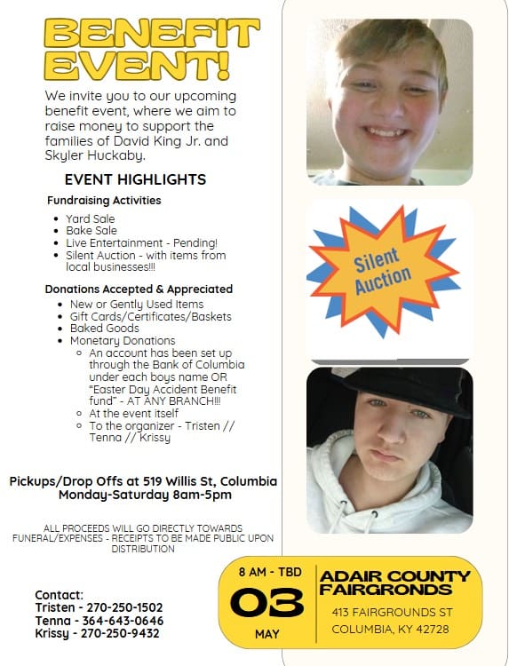 Benefit Event Being Held For Families Of Skyler Huckaby And David King Jr.