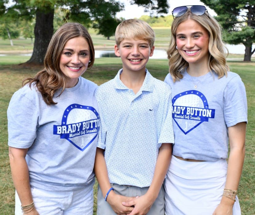 Dr. Emiley Button, left, is joined by the Buttons’ children, Laken, 13, and Landree, 17, on Friday, Sept. 19, at The Pines at Lindsey Wilson golf course. More than 80 people participated in the fourth-annual Brady Button Memorial Golf Scramble, held to raise money to support Lindsey Wilson students and the men’s basketball program. Laken played in the golf scramble named after his late father for the first time this year.