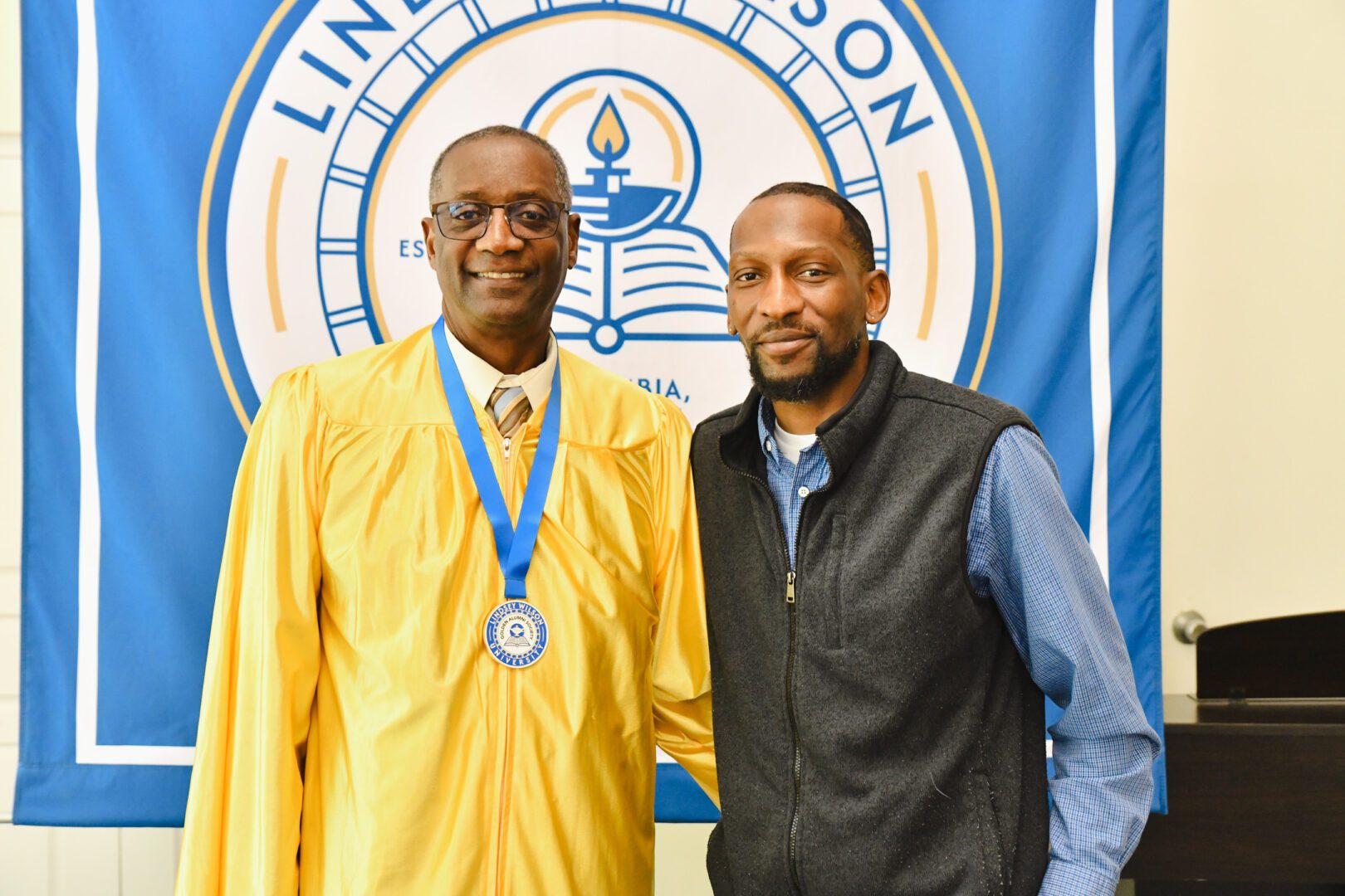 Alfred Gordon ’76 poses with his son, Kevin Gordon of Frankfort, Ky., after the Golden Alumni Society Induction Ceremony. Gordon joined fellow members of the Class of 1976 in being honored for their 50th reunion milestone.