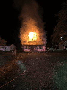 Upon arrival firefighters found a two story structure with heavy fire showing. Firefighters then conducted an offensive attack on this fire and after a good knockdown was made, the fire was contained to the original structure.