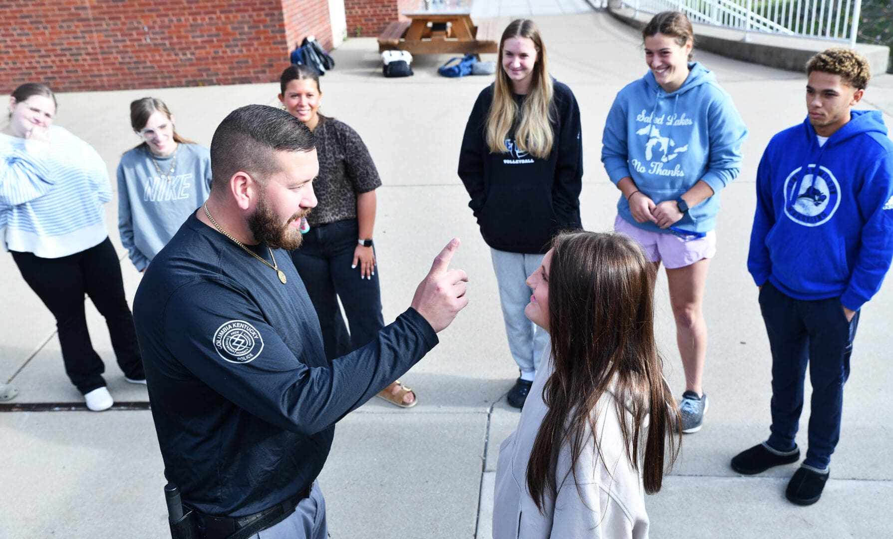Columbia Police Sgt. Trevor Foster, who helped conduct the exercise with Adair County Sheriff’s Deputy Hunter Tweedy, said that interacting with the Lindsey Wilson students was valuable for numerous reasons.