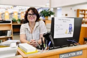 Lindsey Wilson University Circulation Desk Manager Allison Rea is one of the Katie Murrell Library employees who will be working this school year at the new circulation desk, which is located in the center of the Holloway Building. The circulation desk was moved to a more central location, where it welcomes patrons.