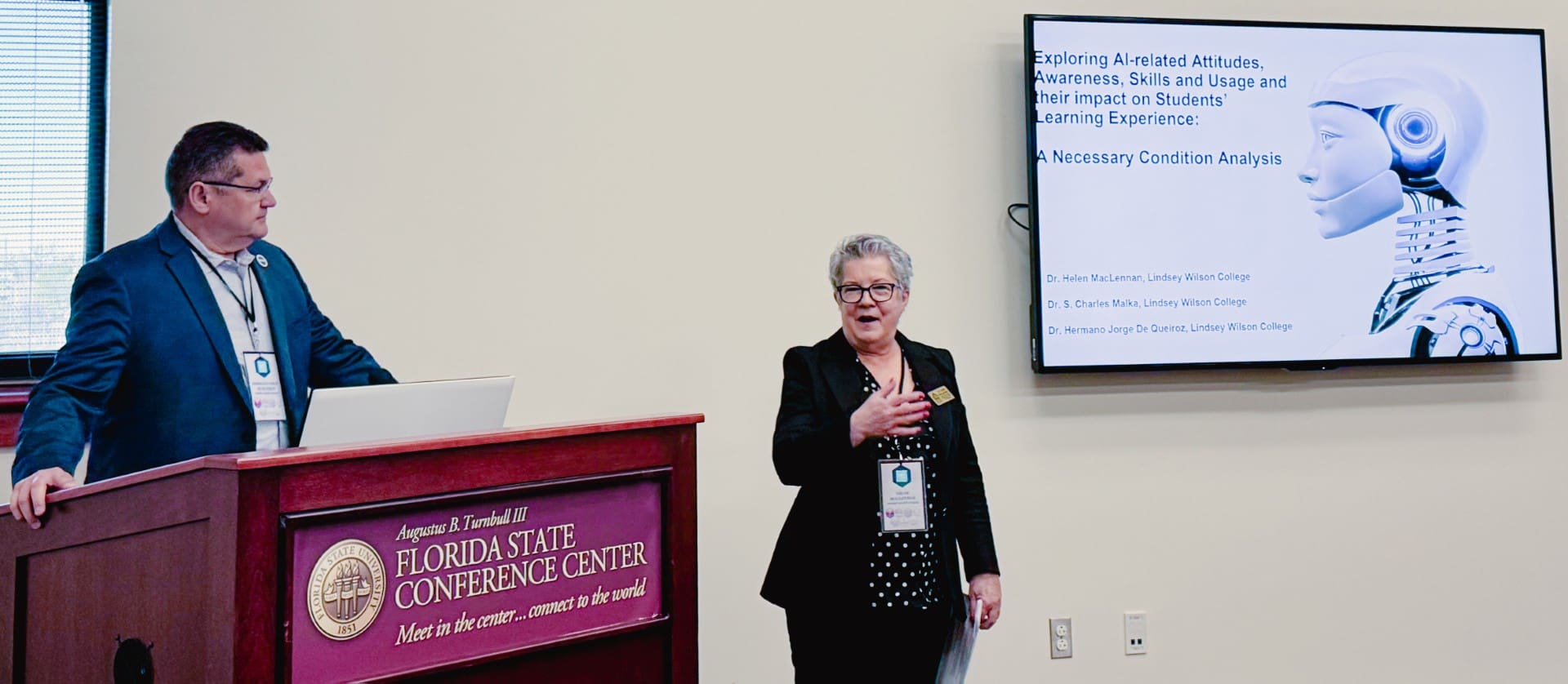 Along with fellow Lindsey Wilson business and technology professors Hermano De Queiroz and Charles Malka, MacLennan surveyed 157 students to better understand how they use AI in their work. De Queiroz and MacLennan presented their findings at the Society for Advancement of Management national conference, held in March in Tallahassee, Florida.