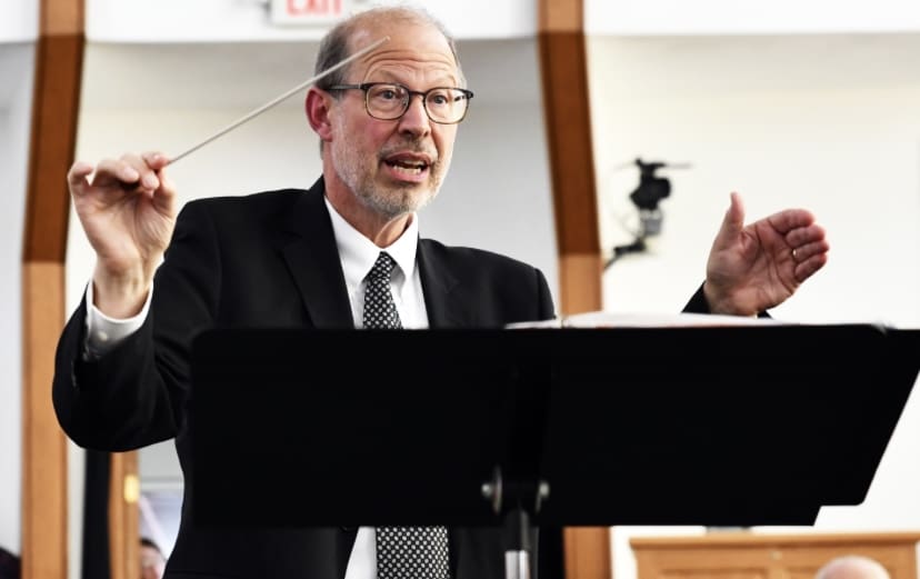 Lindsey Wilson College music professor and director of choral programs Gerald Chafin directs the Lindsey Wilson Singers during their Gala Concert on Sunday, April 13, at Columbia Christian Church.