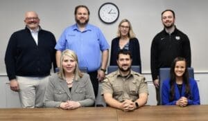 PHOTO: Members of the Lindsey Wilson College School of Business and Communication Advisory Board gather Monday, April 7, in the college’s Roberta D. Cranmer Dining & Conference Center board room. Front row, from left: Trista Corbin Moss ’07, Curtis Pelston ’16 and Chloe Thomas ’22; back row, from left: Andy Mann ’04, Kyle Edwards ’06, former Lindsey Wilson communication professor Anne Streeter and Scot Kirby ’20.