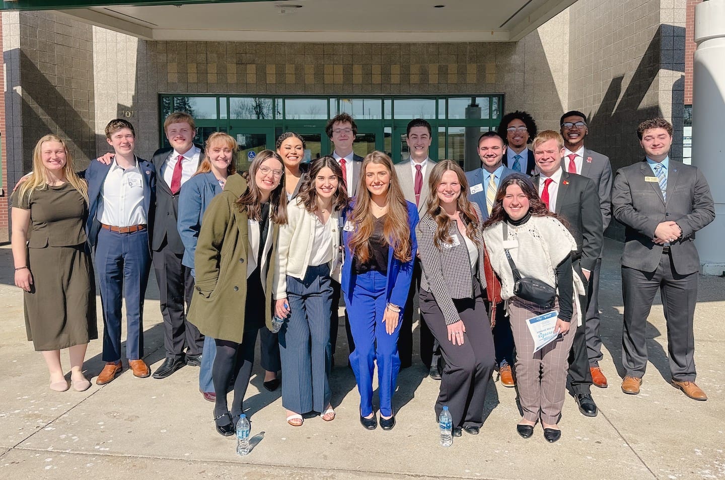 PHOTO – Zachariah Lawson ’26 and Sabrina Ruiz ’26 pose with other student leaders after the Kentucky Student Leadership Forum on Tuesday morning in Frankfort. Students were invited to reflect on servant leadership and the role they will play in shaping the commonwealth.