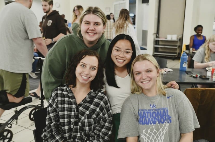 More than 420 Lindsey Wilson College students enjoyed Tuesday night’s spring “Midnight Breakfast” in the Roberta D. Cranmer Dining & Conference Center, including, from left: Riley Roy of Columbia; Rheagan Leveridge of Albany, Kentucky; Katie Saylor of Louisville, Kentucky; and Sarai Collins of Columbia.