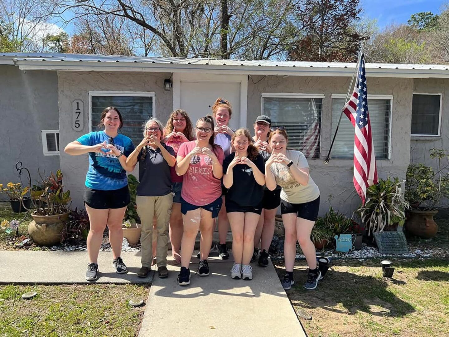 PHOTO – Members of the Lindsey Wilson College Bonner Scholars Program stand in front of one of the houses they served for the St. Johns Housing Partnership in St. Augustine, Florida.