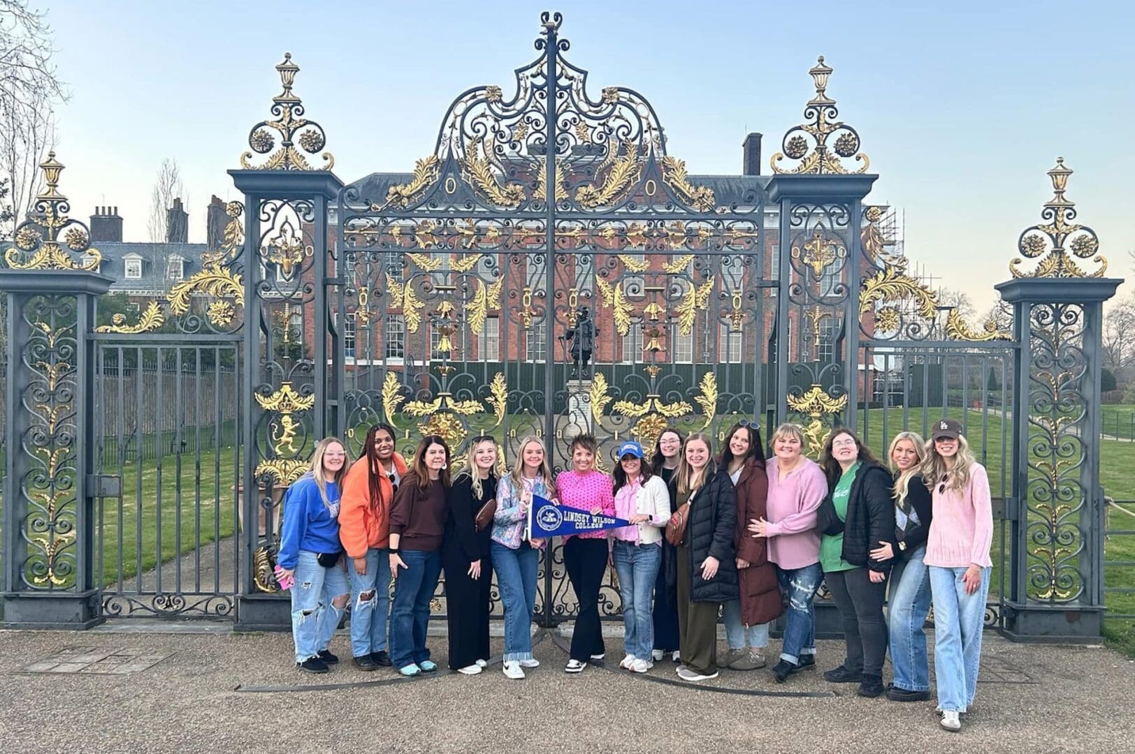PHOTO – Members of the Lindsey Wilson College nursing program gather in front of Kensington Palace during their academic field trip to study nursing in the United Kingdom.