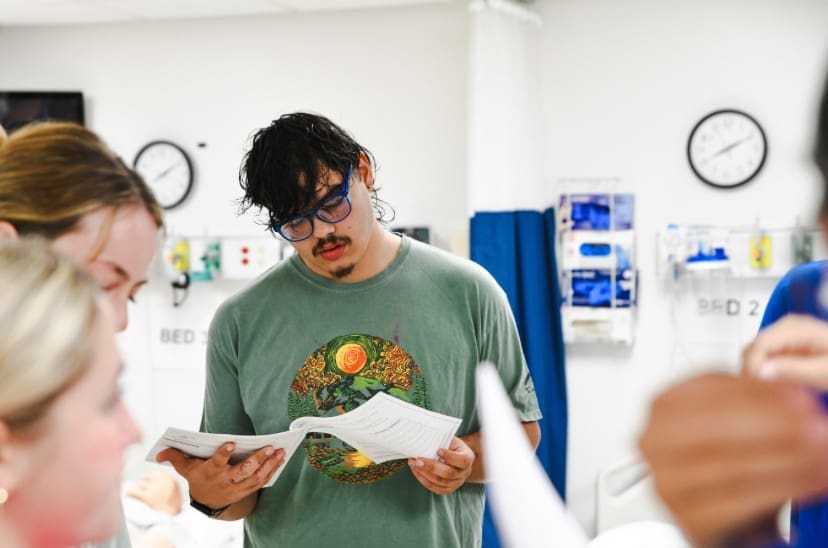 Lindsey Wilson University nursing student Jaden Latiola of Radcliff, Kentucky, reviews materials during nursing boot camp on Tuesday morning in the Dr. Robert and Carol Goodin Nursing & Counseling Center.