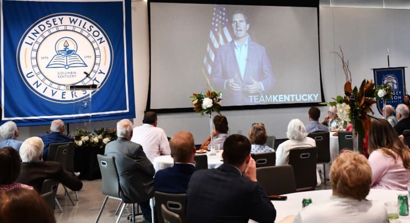 In a recorded video message to the audience, Kentucky Gov. Andy Beshear congratulated Lindsey Wilson on its “new level of success.”