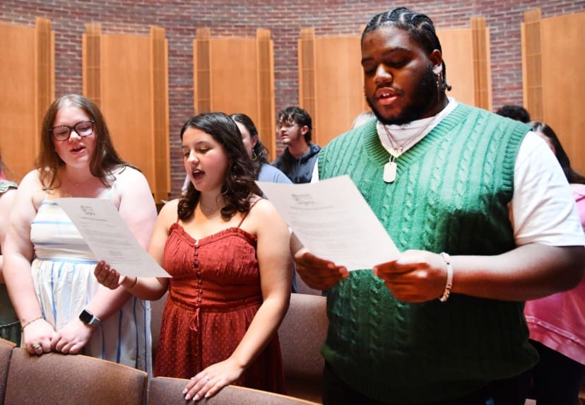 “We’re not here because we have to be, but because something deep inside us wants to be,” said Sadie Kemp ’26 of Columbia. “That something is passion. Passion isn’t just a feeling — it’s a force. It’s what pushes us to grow, to challenge ourselves and to support each other. It’s what turns a group of singers into a family.”