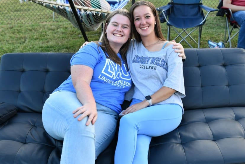 Lindsey Wilson University seniors Amanda Skipworth of Winchester, Kentucky, and Sadie Kemp of Columbia enjoyed their final “Couch Night” as undergraduates on a futon during the Wednesday, Oct. 1, Lindsey Wilson-Cumberland (Tennessee) University soccer doubleheader on Ray Wells Field at Walter S. Reuling Stadium.
