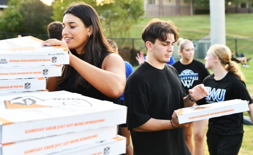 This year’s “Couch Night” set a record, according to Lindsey Wilson Student Government Association President Zachariah Lawson ’26 of Williamsburg, Kentucky. He said that a total of 133 pizzas were handed out this year — eight more than last year’s total.