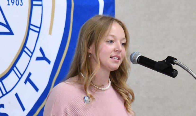 Student speaker Whitley Gibson ’27 of Edmonton, Kentucky, said that she is an example of what happens when a student is embraced by the Lindsey Wilson community.