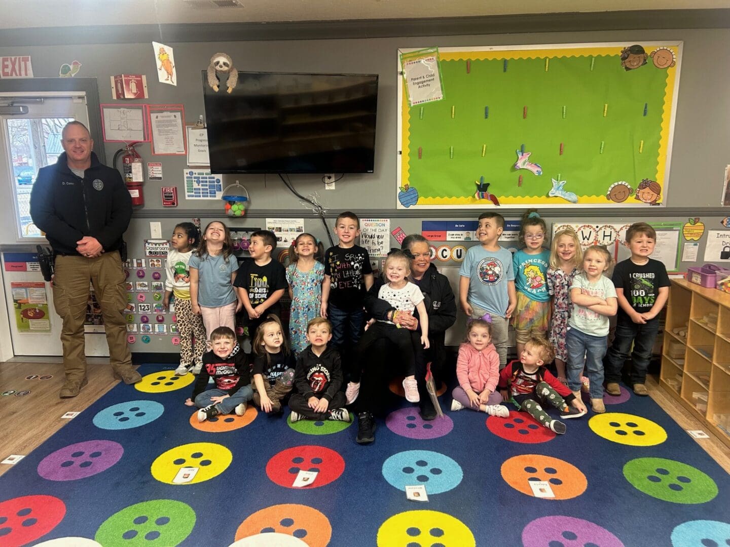 Assistant Chief Drew Conn and Mayor Hoots read to students at the head start in recognition of Dr. Seuss Week.