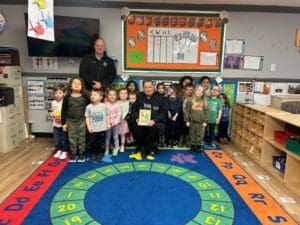 Assistant Chief Drew Conn and Mayor Hoots read to students at the head start in recognition of Dr. Seuss Week.