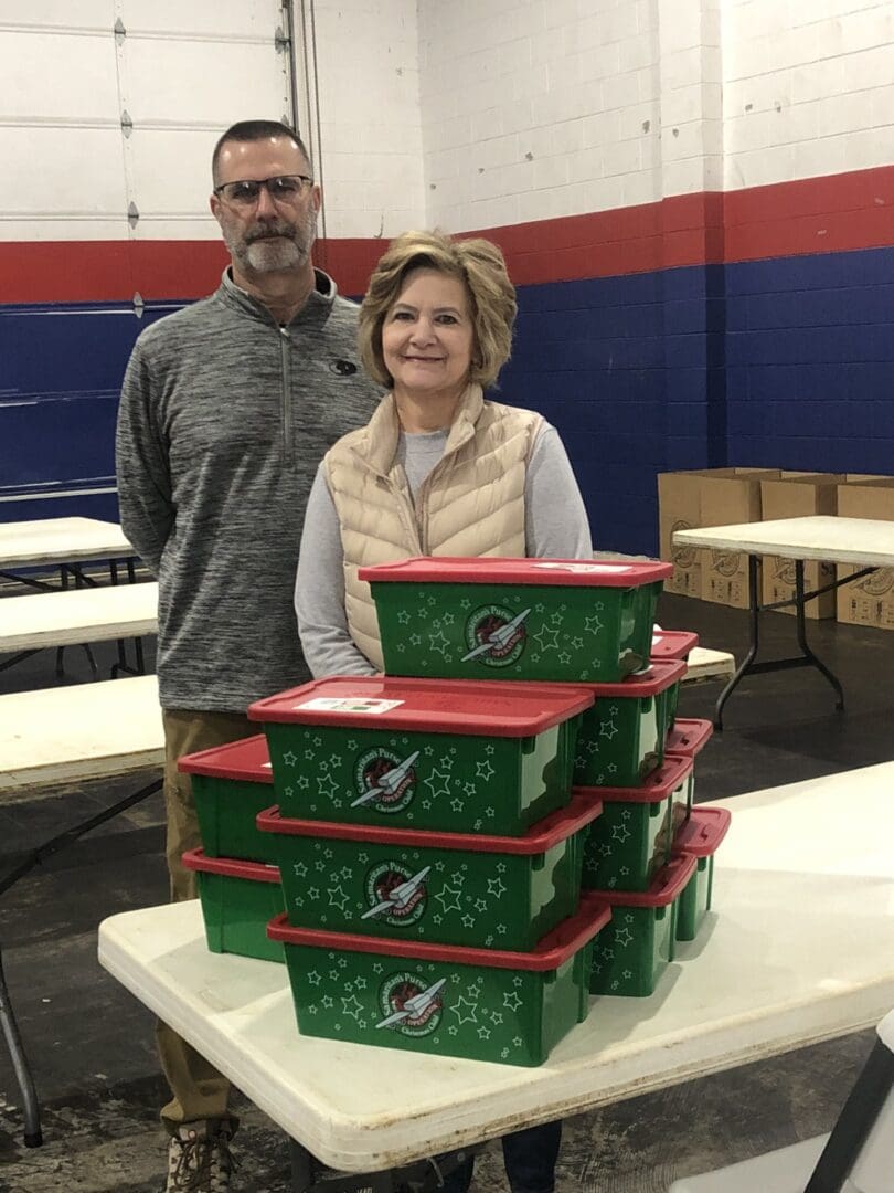 Mark and Sheri Hutchison made their annual delivery of OCC shoebox gifts early Tuesday morning.