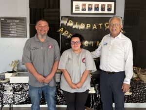 Picture: Judge Bryant with 911 Director Derrick Murphy and 911 Dispatcher Laura Coffey.