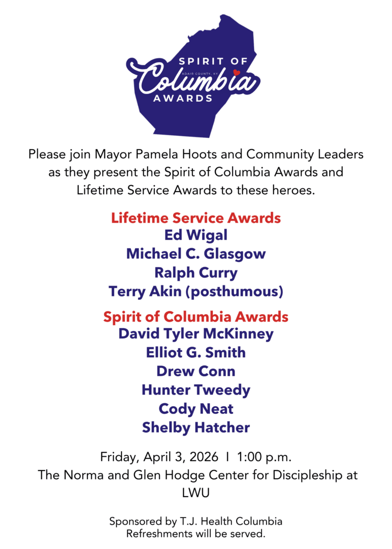 The second annual Spirit of Columbia awards will be held this Friday, April 3, 2026 at 1 p.m. in Columbia. The location has been changed to the Hodge Center on the Lindsey Wilson University campus due to anticipated inclement weather.
