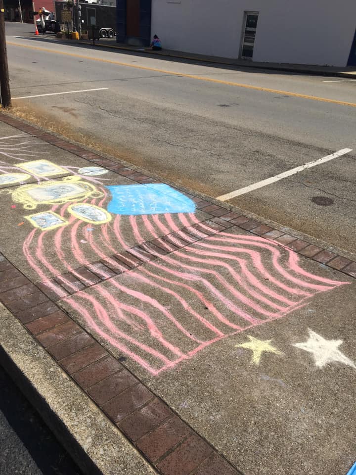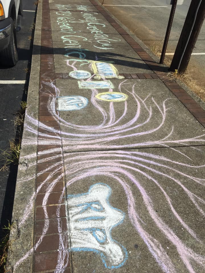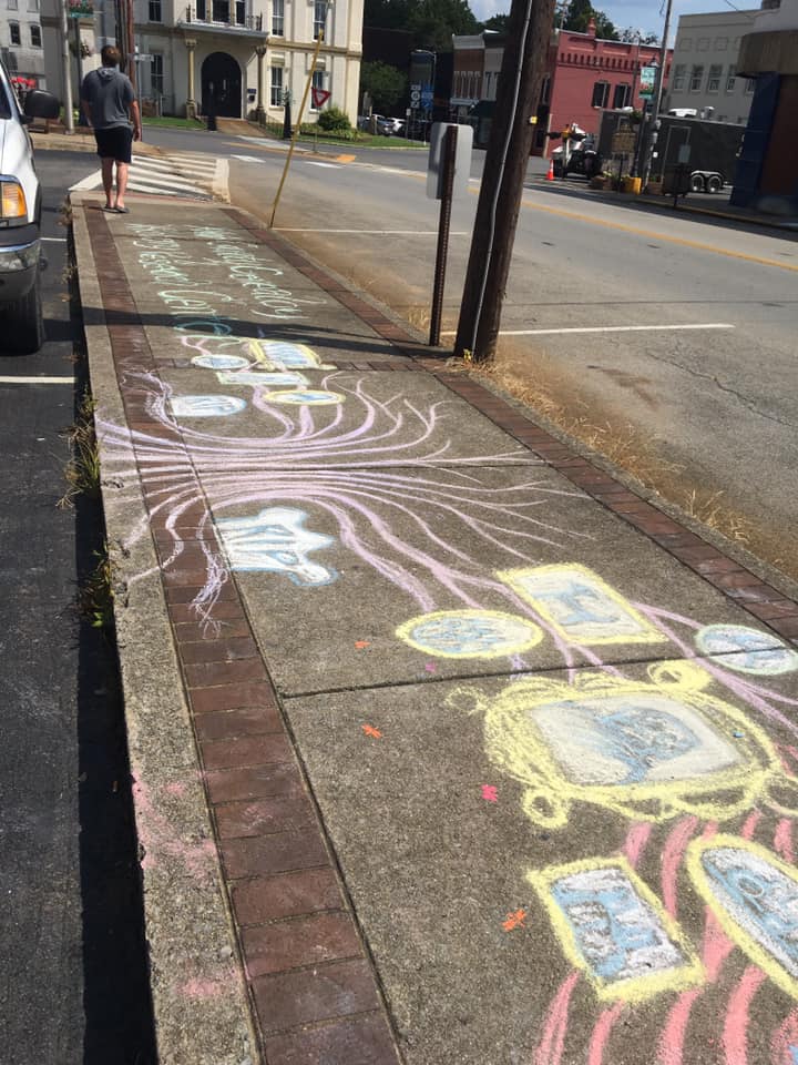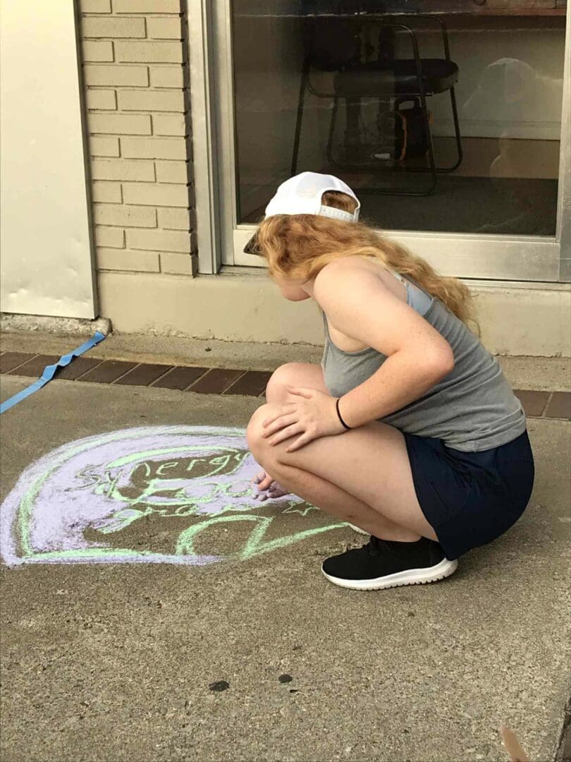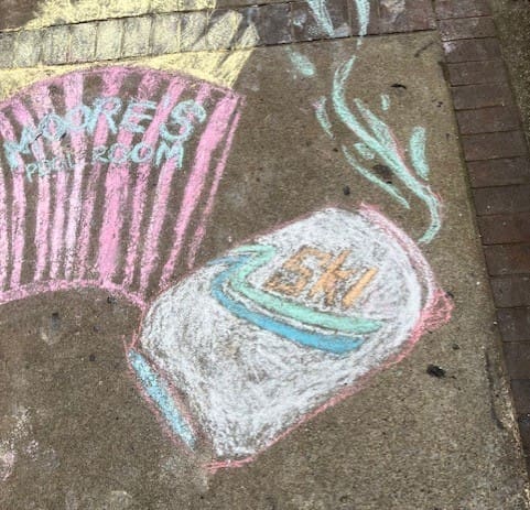 Serena also came out very early in the morning to artistically represent Synergy and a special in front of Moore’s Pool Room emphasizing “Best burger in town”, SKI, and Lance Burton, world famous magician!