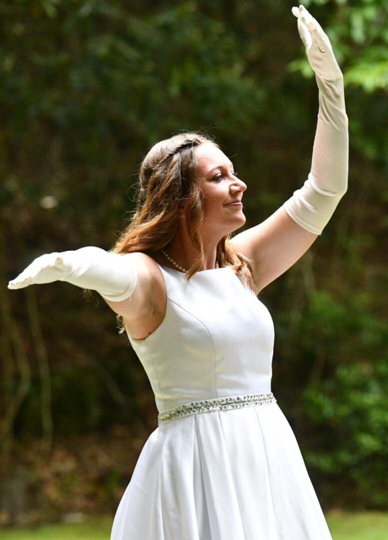 Lindsey Wilson College representative Sophia Hunziger ’25 of Rosendale, Missouri, performs her curtsy during the queen’s coronation ceremony, held Saturday, May 24, at Laurel Cove Amphitheater in Pine Mountain State Resort Park, Kentucky’s oldest state park. The Kentucky Mountain Laurel Festival is Kentucky’s second-oldest festival.