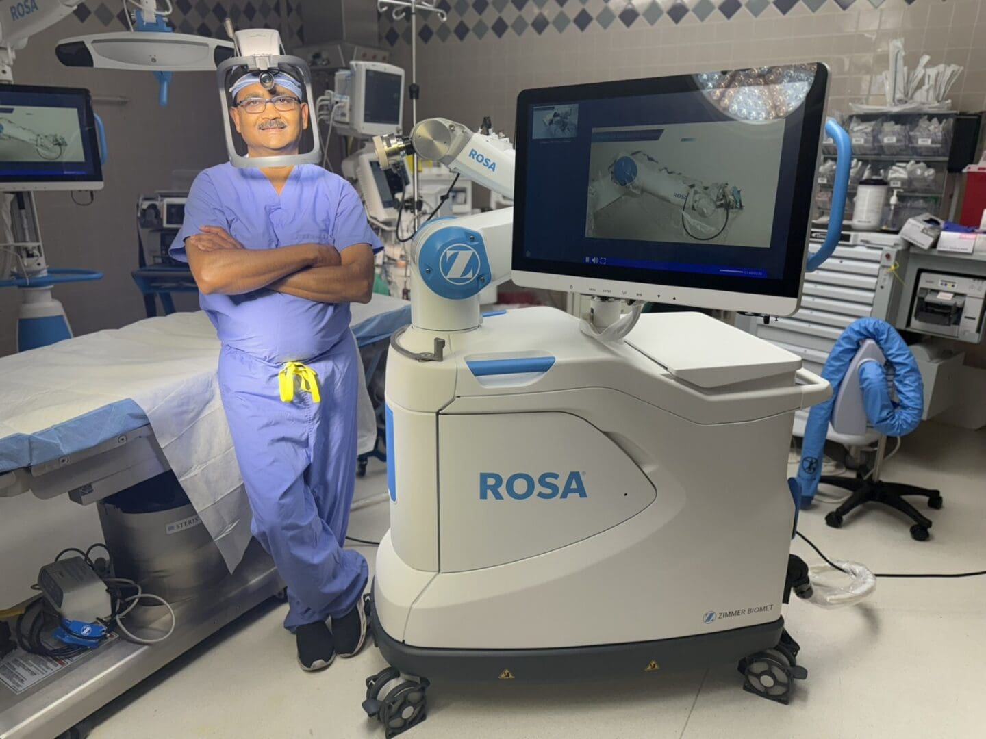 ROSA® Knee is a robotically assisted surgical system designed to help perform total knee replacement surgery. Data provided by ROSA® Knee assists with complex decision-making and enables the surgeon to use computer and software technology to control and move surgical instruments, allowing for greater precision and flexibility during procedures.