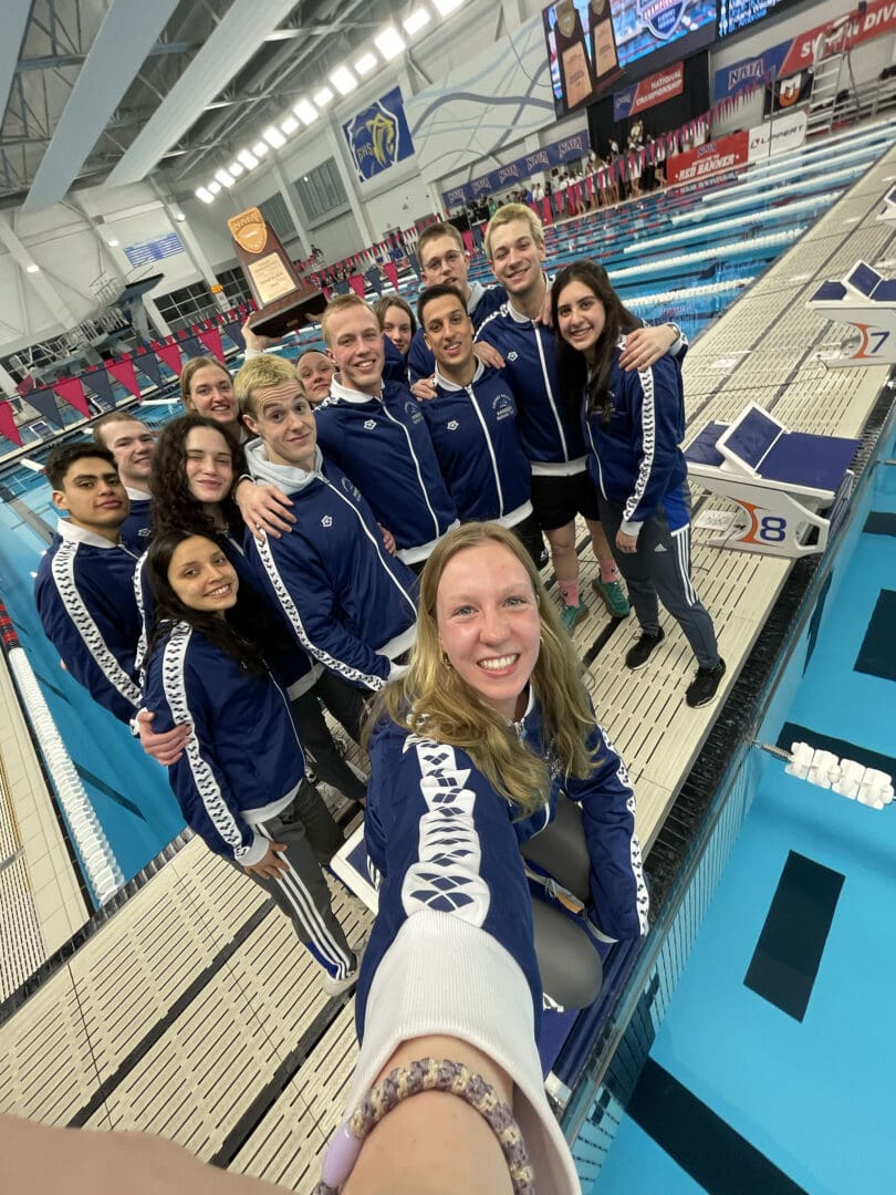 PHOTO – Members of the Lindsey Wilson College men’s and women’s swimming teams take a selfie photo at the NAIA Swimming and Diving National Championships, held March 5-8 in Elkhart, Indiana.